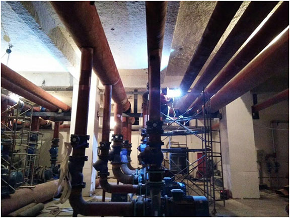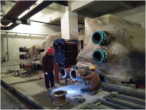 工程簡介:吳忠萬達廣場位于寧夏吳忠市利通區,北靠開元大道,東臨利寧北街,西接黎明街。本次項目工程范圍為一期工程中的1#樓購物中心、2#商業、3#辦公樓,K1樓地下設備用房、車庫、超市。建筑層數:4層(局部5層)。萬達大商業冷凍站設在地下一層。大商業計算冷負荷為10383.4KW,因為甲方多次進行方案變更與調整,提出了諸多施工問題,例如冷卻塔的安裝位置、制冷機房設備的布置、水系統管道的布線方式等,我方積極對甲方提出的問題與方案進行了解答與探討,使得施工能夠快速穩定進行。