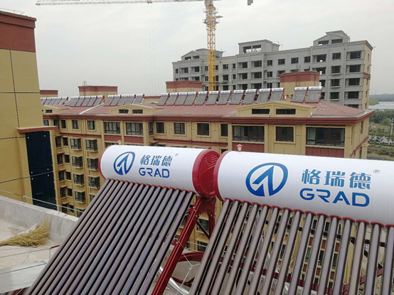 技術要求:該項目100L陽臺壁掛式太陽能熱水器與130L緊湊式太陽能熱水器共計262臺,數字化自控功能,電加熱輔助的光電能源互補型供熱,自動補水、恒溫加熱、冬天管路防凍,在陰、雨、雪天,仍能保障日常家庭日常洗浴熱水需求,全年無間斷熱水。