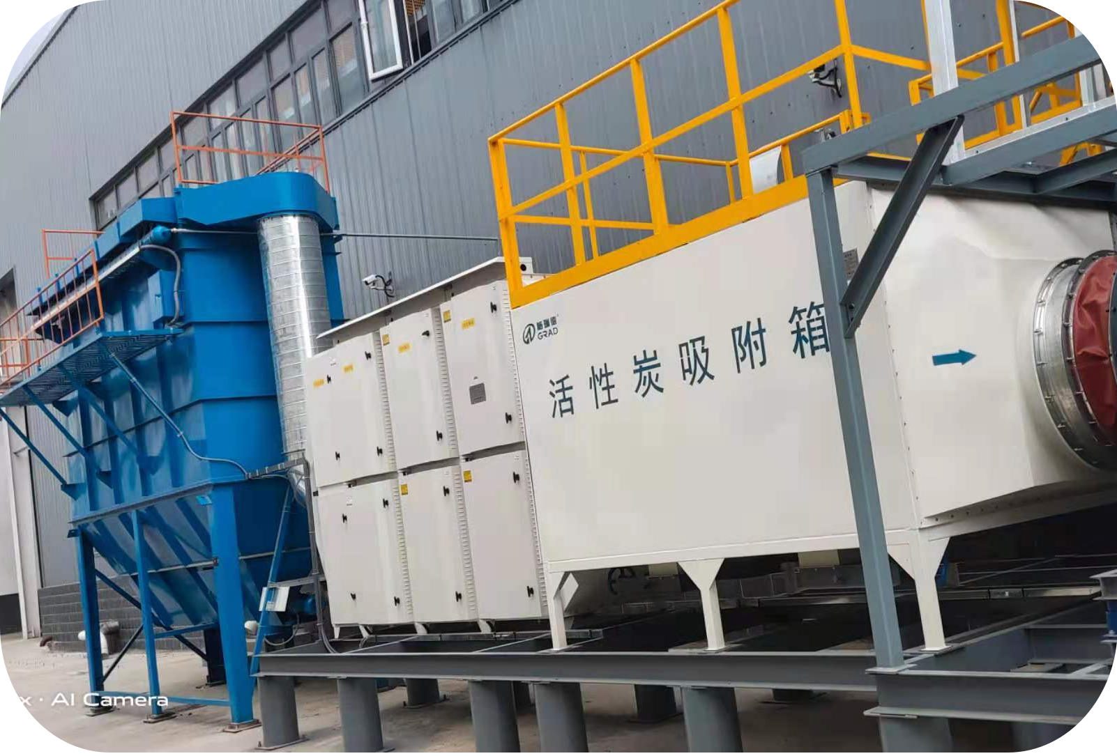 產(chǎn)品內(nèi)容:UV光解等離子一體機(jī)、干式過濾器、活性炭?jī)艋O(shè)備、離心風(fēng)機(jī)