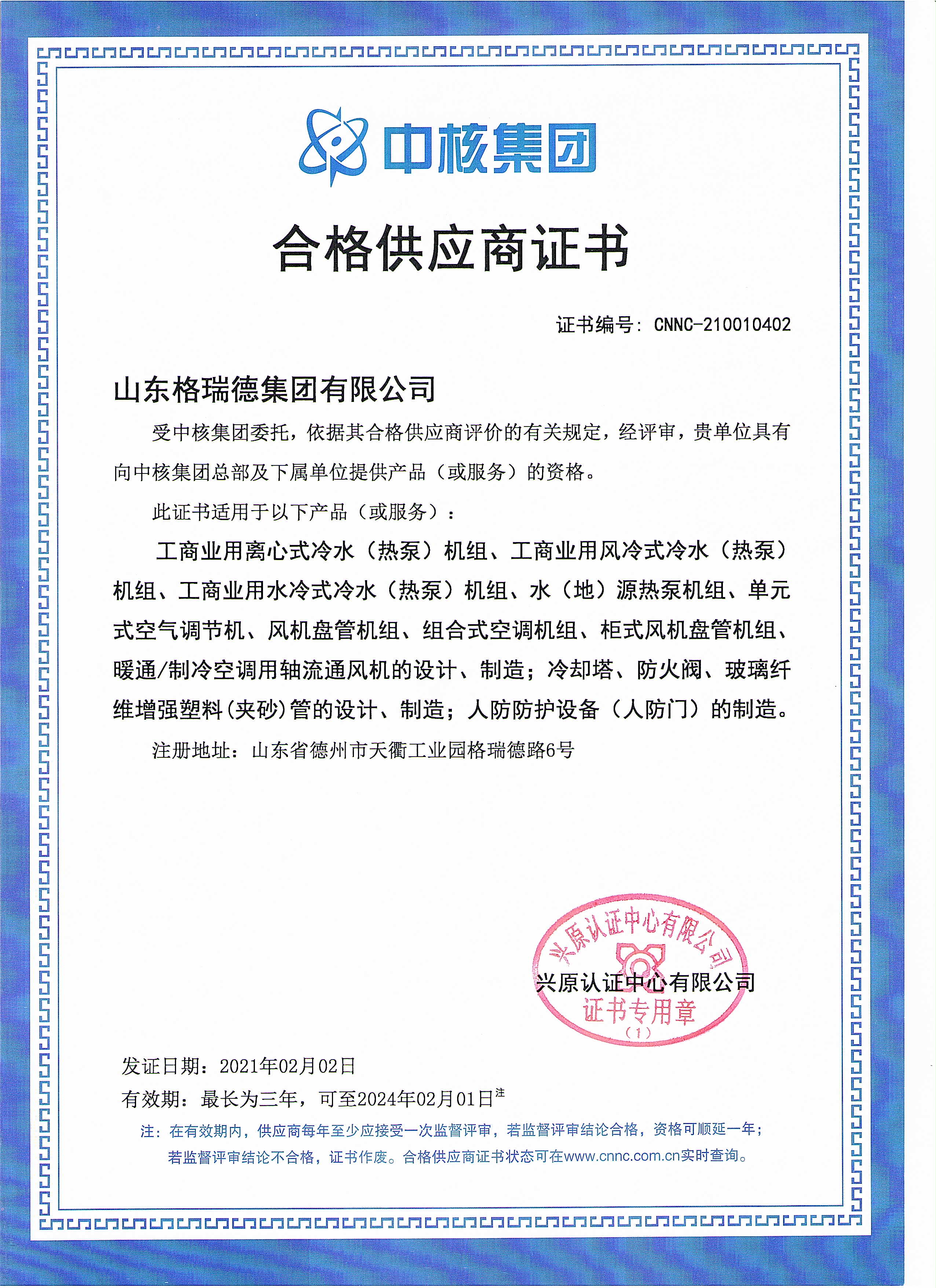 擁有國家機電設備安裝壹級資質,環境保護工程二級資質,建筑裝修裝飾工程專業承包二級資質,鋼結構工程三級資質,并獲得了中國制冷空調設備維修安裝資質,集團生產的空調產品獲得國家制冷設備生產許可證,3C中國國家強制性產品認證、CRAA中國制冷空調行業權威性產品性能認證,壓力容器國家特種設備設計、制造許可證,制冷主機、風機產品榮獲中國節能產品認證。