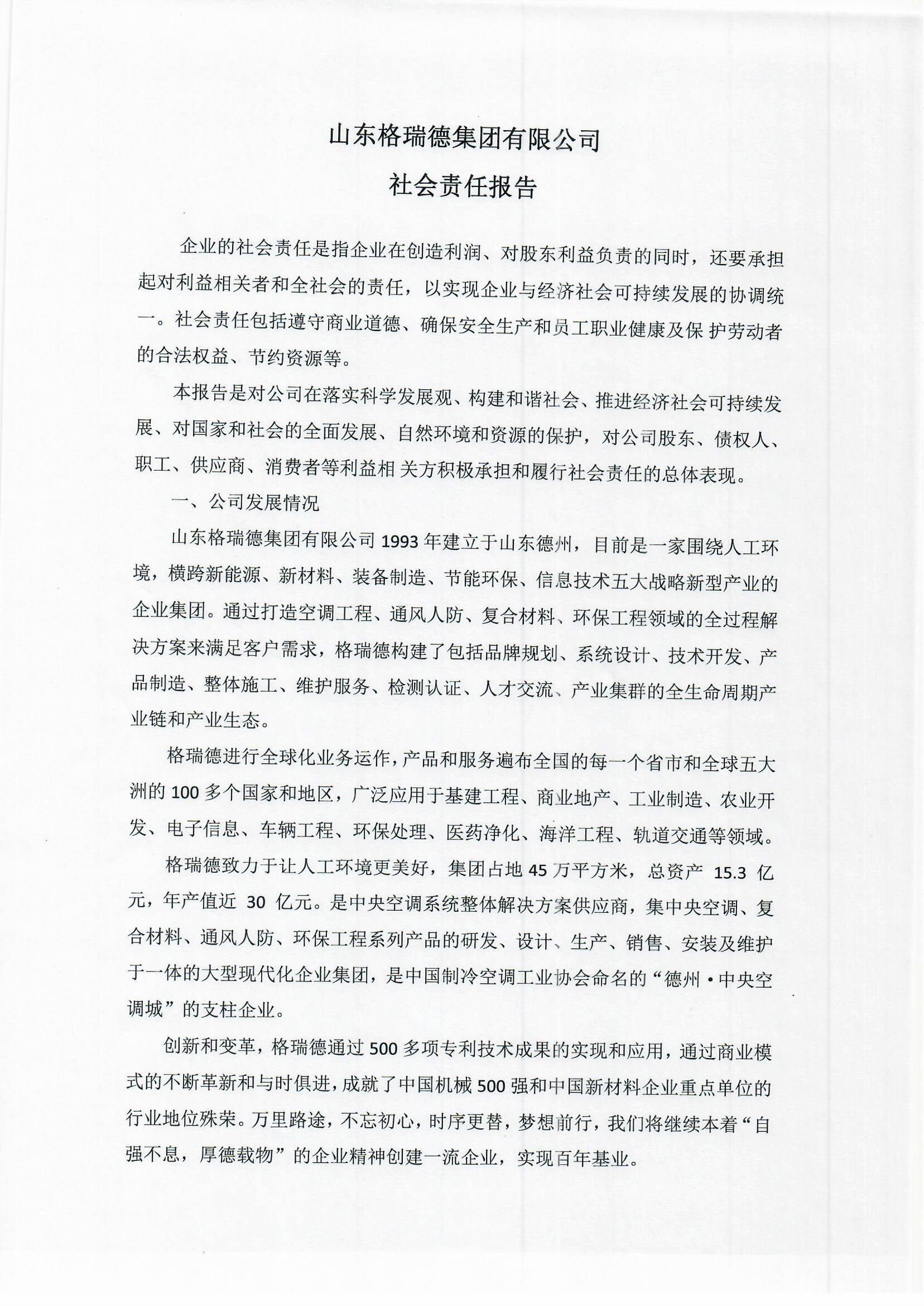 格瑞德1993年建立于山東德州,目前是一家圍繞人工環境,橫跨新能源、新材料、裝備制造、節能環保、信息技術五大戰略新型產業的企業集團。格瑞德進行全球化業務運作,產品和服務遍布全國的每一個省市和全球五大洲的100多個國家和地區,廣泛應用于基建工程、商業地產、工業制造、農業開發、電子信息、車輛工程、環保處理、醫藥凈化、海洋工程、軌道交通等領域。格瑞德從業人員過萬人,在山東、貴州、四川、新疆、內蒙等地建有生產基地,在上海、北京、濟南、蘭州以及美國洛杉磯建有研發中心。