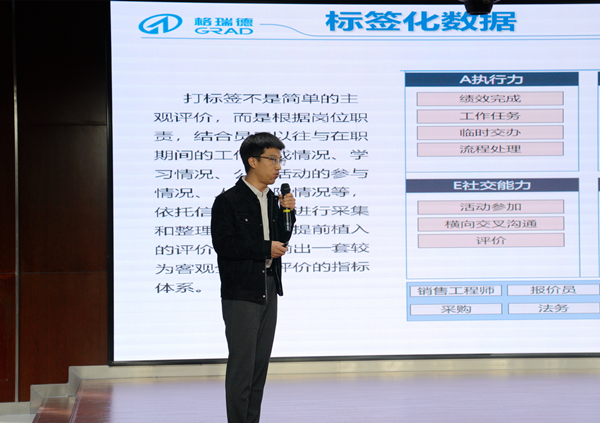 集團(tuán)信息化設(shè)計(jì)中心主任談慶松作為項(xiàng)目匯報(bào)人,利用有限的時(shí)間清晰、完整、流暢地闡述了集團(tuán)人力資源管理信息化歷程及標(biāo)簽化創(chuàng)新思路,并精確、沉穩(wěn)地回答了評(píng)委提問,最終喜獲創(chuàng)新大賽唯一的一等獎(jiǎng)。