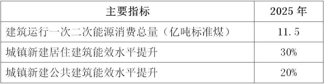 1.總體目標。到2025年,城鎮新建建筑全面建成綠色建筑,建筑能源利用效率穩步提升,建筑用能結構逐步優化,建筑能耗和碳排放增長趨勢得到有效控制,基本形成綠色、低碳、循環的建設發展方式,為城鄉建設領域2030年前碳達峰奠定堅實基礎。