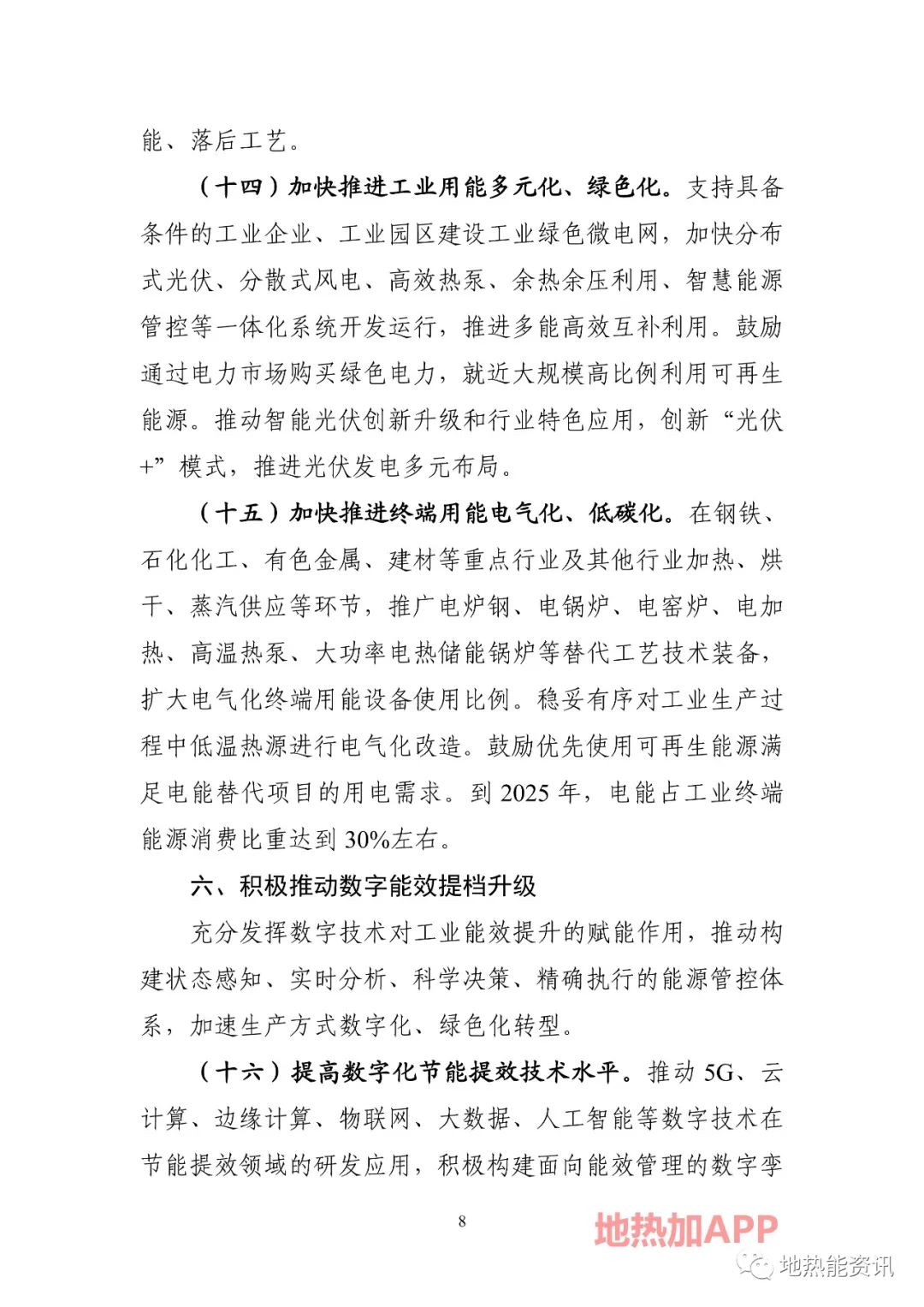 《行動計劃》提出,加快推進終端用能電氣化、低碳化。在鋼鐵、石化化工、有色金屬、建材等重點行業及其他行業加熱、烘干、蒸汽供應等環節,推廣電爐鋼、電鍋爐、電窯爐、電加熱、高溫熱泵、大功率電熱儲能鍋爐等替代工藝技術裝備, 擴大電氣化終端用能設備使用比例。穩妥有序對工業生產過程中低溫熱源進行電氣化改造。鼓勵優先使用可再生能源滿足電能替代項目的用電需求。到2025年,電能占工業終端能源消費比重達到30%左右。