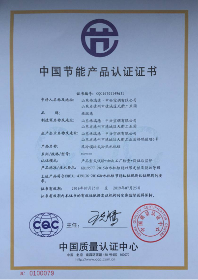 近日,主機公司風冷模塊式冷熱水機組榮獲中國節能產品認證證書。