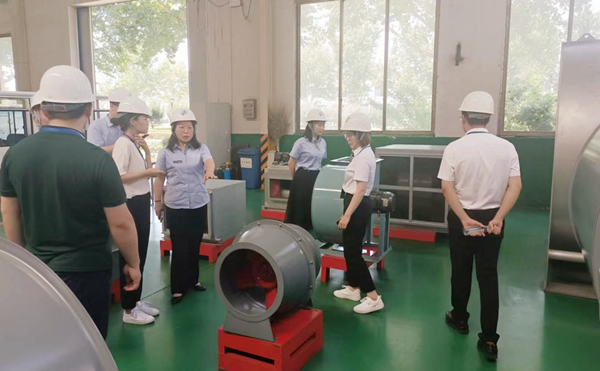 中建八局二公司采購及安裝團隊主要考察風機、風閥產品。此次考察團參觀了格瑞德展廳及生產車間,在此過程中,通風工程一公司總經理孫紅靜詳細介紹了格瑞德集團基本情況、業務領域、產品和服務等,考察團一行對集團的發展規模和生產現代化程度給予高度評價。