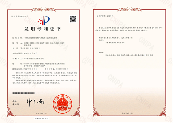 “一種危險廢物處置煙氣凈化新工藝路線及系統”是集團環保板塊在解決揮發性有機物排放問題的課題中研發的,也是該課題中獲得的第二項發明專利,為“高品質活性炭吸附+活性炭集中再生+物聯網全過程管控”的綠島VOCs綜合治理模式提供了強有力的技術保障。