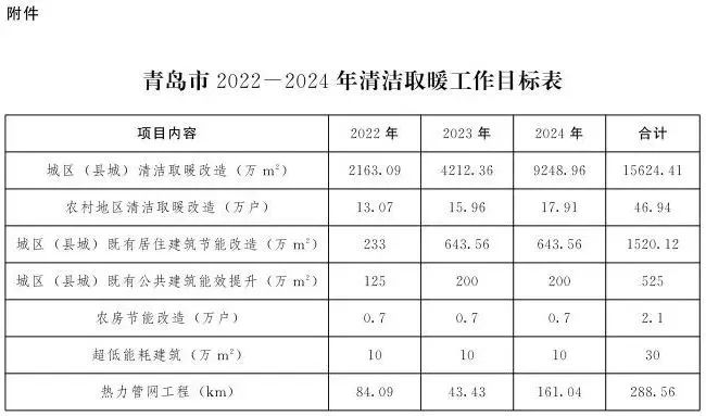 青島市冬季清潔取暖項目實施方案(2022-2024年)