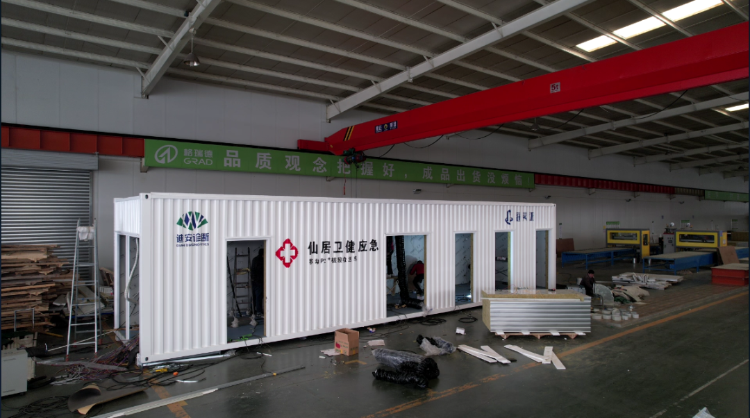 2022年初,格瑞德集團接到一批特殊的訂單:10個方艙實驗室。臨近年關,時間緊任務重,集團積極協調調度,加班加點趕生產,最終在正月28凌晨,將前期所需的4個方艙實驗室發至浙江、北京、河北等地,主要采用集團凈化鋼質門、凈化彩鋼板等產品,并負責整體的安裝工作。