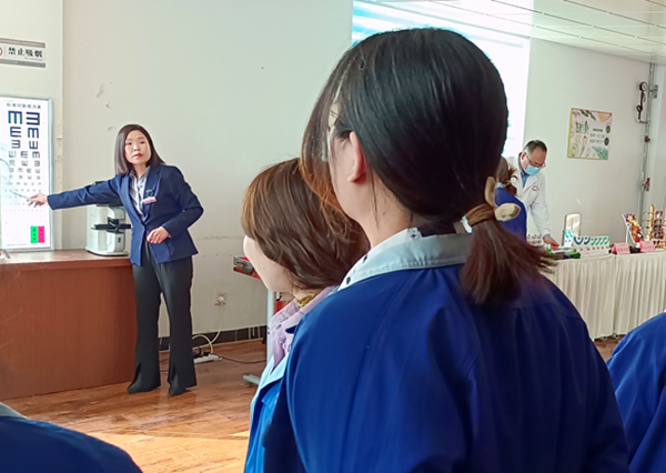 集團工會邀請英翔視光眼鏡有限公司為現場女職工們進行眼部驗光、清洗、更換眼鏡零配件,傳播護眼小常識和眼鏡的配戴方式、保養方法。