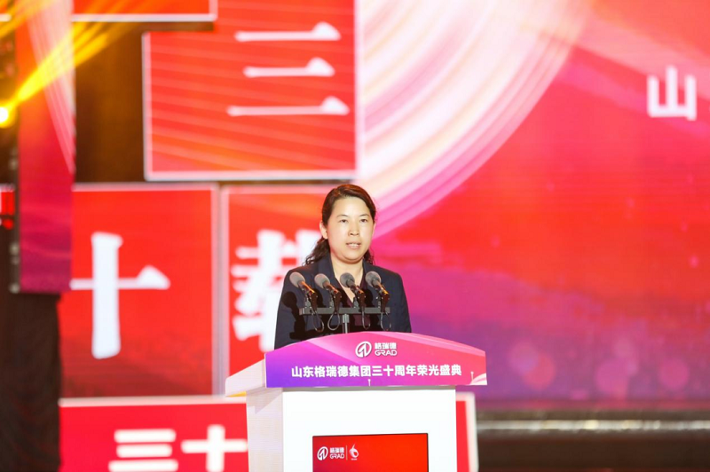 德州市德城區人民政府副區長、黨組成員劉桂芝首先對山東格瑞德集團有限公司成立30周年致以祝賀,肯定了集團30年來的發展成績。他表示,格瑞德作為德城新能源裝備產業的龍頭企業,業產品覆蓋新能源、新材料、節能環保等五大領域,今天格瑞德的5項榮譽揭牌、8個重點項目啟動,必將是格瑞德發展歷程上濃墨重彩的一筆,也是德城工業高質量發展的又一重要成果。