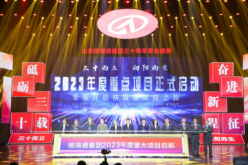2023年山東省政府報告提出推動實現“五個新躍升”,聚心提氣實現高質量發展,為聚焦行業視線、突顯研發實力,釋放推動德州實體經濟穩步前進的強勁信號,展現德州市“企業興、產業旺”的良好營商環境,山東格瑞德集團有限公司特舉辦三十周年慶典。