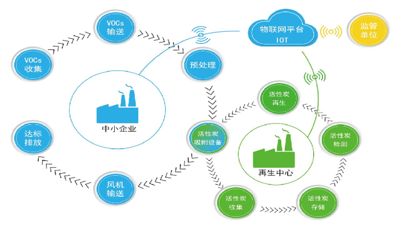 該模式已經(jīng)成功應用于眾多中小企業(yè)的VOCs治理工程,工程建設運行實踐表明,該模式使分散的、間歇排放的、難以原位再生的中小風量有機廢氣得到凈化,達成完整的治理閉環(huán)模式,處理效率高,廢氣達標排放,投資運維費用低,同時可以減少固體廢棄物的產(chǎn)生、降低企業(yè)的污染治理成本,實現(xiàn)活性炭資源的循環(huán)利用和全生命周期管理,社會、經(jīng)濟、生態(tài)效益顯著。