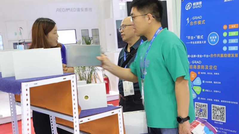集團(tuán)潔凈樣板間、凈化組合式空調(diào)機(jī)組及直膨式凈化空氣處理機(jī)組獲得現(xiàn)場(chǎng)觀眾一致好評(píng)。格瑞德凈化展示樣板間由凈化彩鋼復(fù)合夾芯板和凈化密閉門窗組成,現(xiàn)場(chǎng)安裝方便快捷,廣泛適用于醫(yī)院、制藥、食品、電子等領(lǐng)域。凈化彩鋼復(fù)合夾芯板是由格瑞德集團(tuán)自主研發(fā)、設(shè)計(jì)、生產(chǎn)的一種加強(qiáng)型的復(fù)合夾芯板,可廣泛用于高科技電子、醫(yī)藥、化工、食品等行業(yè)的凈化房圍護(hù)、吊頂,以及工業(yè)廠房、倉庫、冷庫、烤爐、空調(diào)器壁板等潔凈領(lǐng)域。