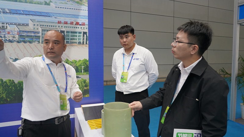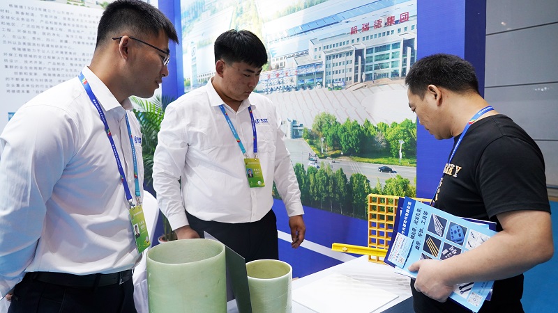 會上,玻璃鋼管道、玻璃鋼拉擠格柵受到了現場參展觀眾的一致好評,格瑞德玻璃鋼管道具備重量輕、剛度高、成本低等優勢,每根生產長度可達12米,管路接頭少,使用壽命可達50年以上、無毒無味,可直接輸送飲用水??沙浞诌m用于船舶、市政排水、消防、水利工程、石油化工、電力等行業輸調水、循環水項目。