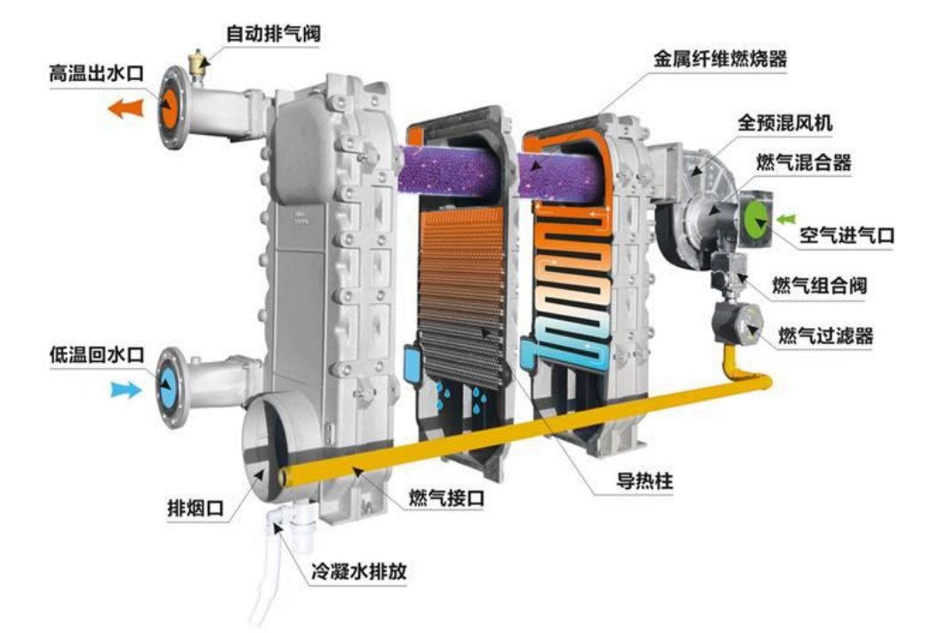 無壓運行,沒有爆炸風險。鑄鋁換熱器等核心部件設計使用壽命可達40年,控制系統原裝進口配件,運行穩定壽命長。27道保護功能,無憂使用。物聯網遠程控制,可單臺或多臺開啟,無需人工看守,全自動化運行。配置德國EBM變頻風機、美國霍尼韋爾(文丘里混合器、點火變壓器、燃氣調節閥組)、荷蘭貝卡爾特硅鑄鋁換熱器,產品性能及運行穩定可靠。