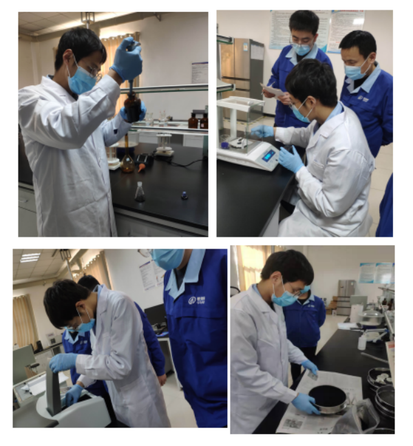 進行車間質檢時,他從飽和炭入庫取樣,再到再生活性炭出料,一直在對活性炭指標進行追蹤。在車間對每一包活性炭進行初步成品檢驗,嚴格監督活性炭進廠材料的質量、型號、規格,監督各項活性炭項目工藝施工班組操作標準。