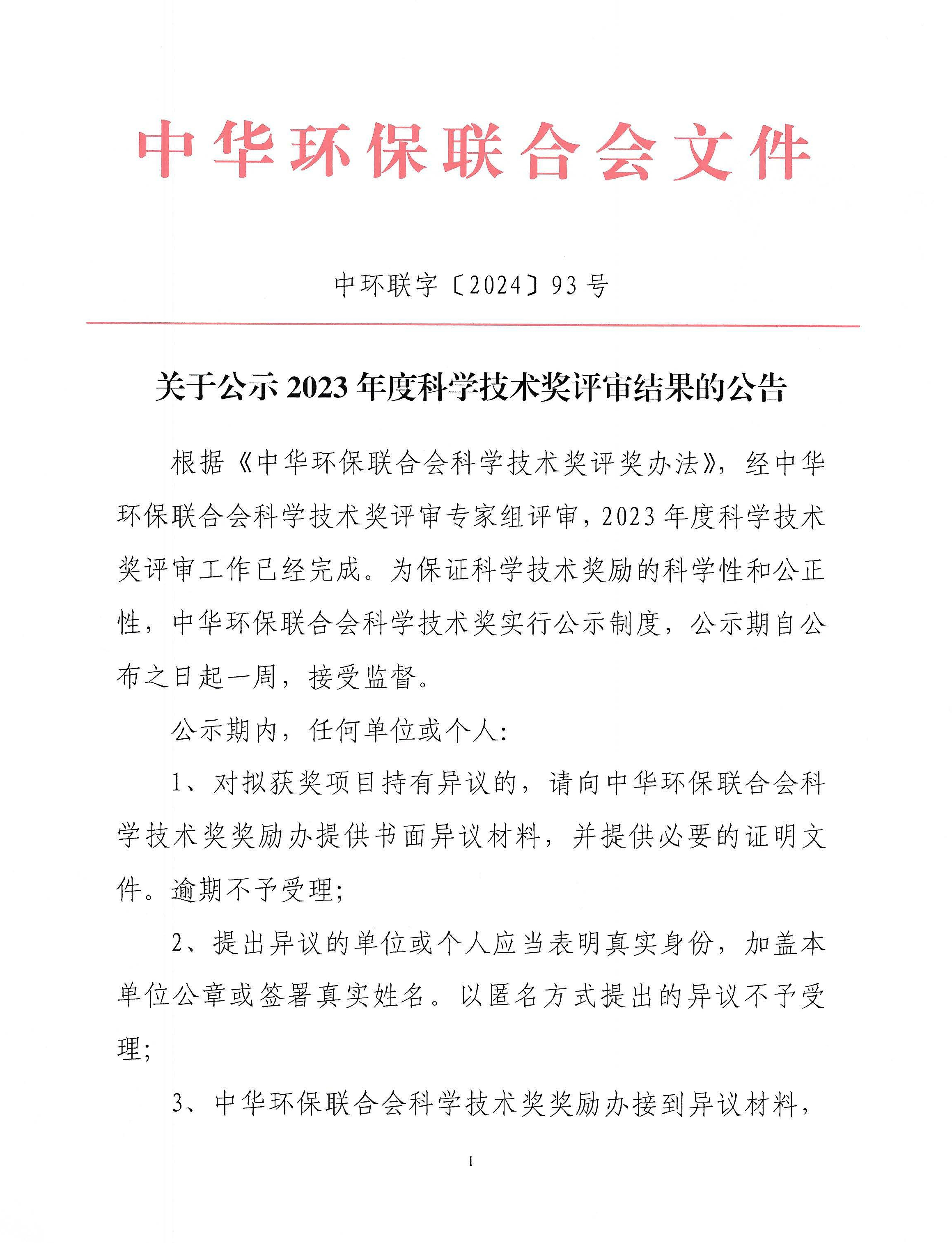中華環(huán)保聯(lián)合會科學技術(shù)獎是中國環(huán)保領(lǐng)域最高級別的榮譽獎項之一。該獎項評審每年開展?次,接受國家科學技術(shù)獎勵?作辦公室的管理和監(jiān)督,其評審委員會由環(huán)保行業(yè)權(quán)威專家組成,評選過程嚴謹公正,旨在?勵?態(tài)環(huán)境保護及相關(guān)技術(shù)服務(wù)?業(yè)的科技創(chuàng)新、科技進步?作中作出突出貢獻的集體和個?,?勵?態(tài)環(huán)境保護?業(yè)科技?員的?主創(chuàng)新能?,激發(fā)?態(tài)環(huán)境保護?作者科學研究熱情,推動?態(tài)環(huán)境科技成果轉(zhuǎn)化。