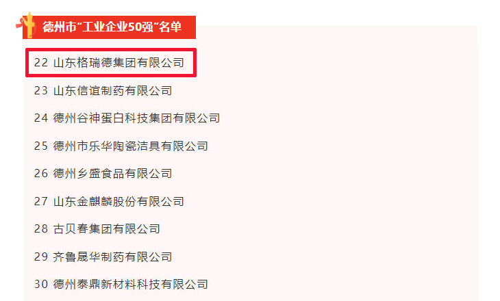 2月,德州市民營經濟高質量發展暨優化營商環境大會召開。格瑞德集團憑借卓越的企業實力和持續的創新發展榮登德州市“工業企業50強”榜單。