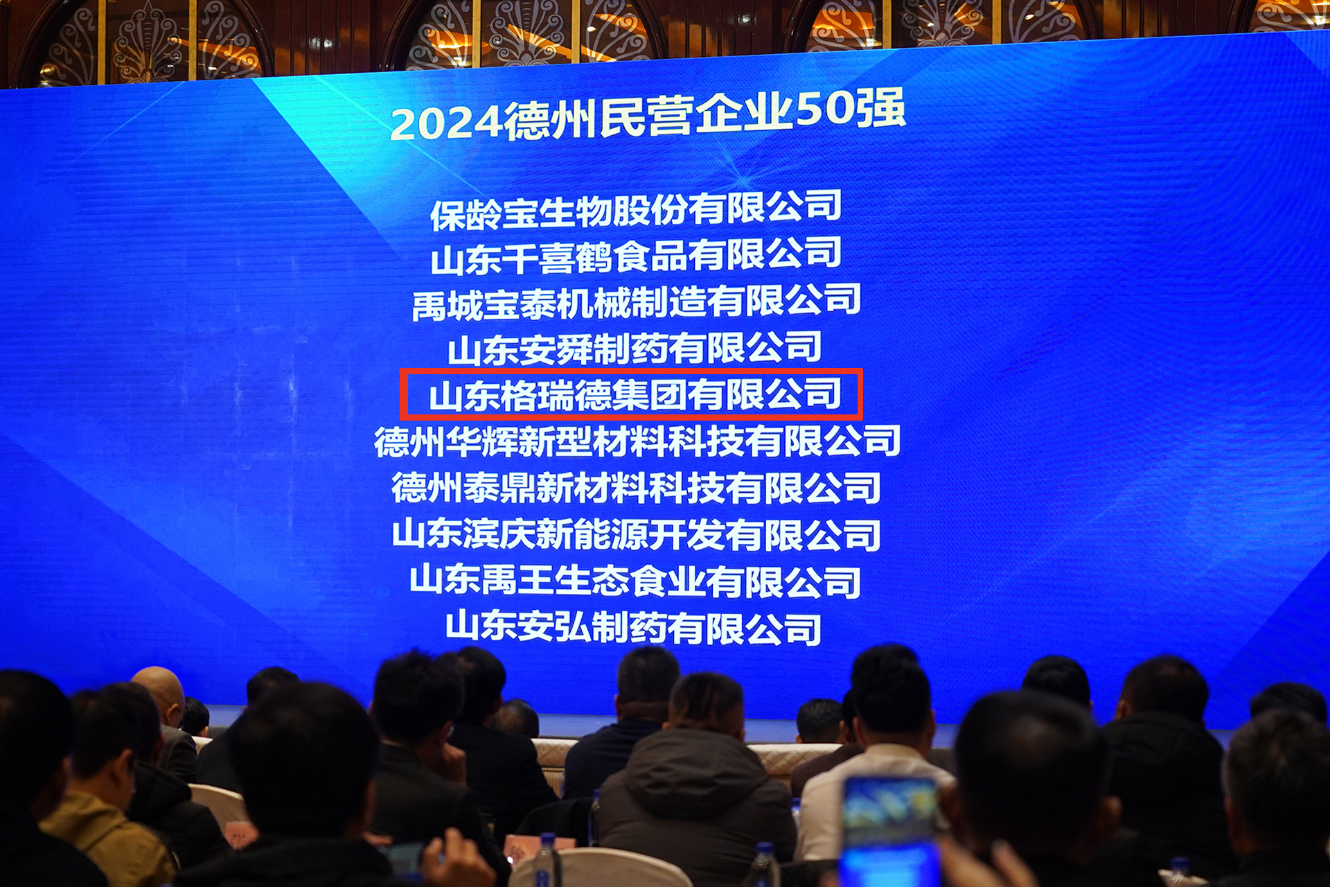 12月,2024德州民營企業50強發布暨“長三角商會名企德州行”活動在德州舉行。在眾多優秀企業中,山東格瑞德集團有限公司脫穎而出,榮膺“德州市民營企業50強”,作為德州民營企業的佼佼者,格瑞德始終堅守初心,不斷追求卓越,憑借敏銳的市場洞察力和強大的技術實力,不斷創新產品,提升服務質量,贏得了市場的廣泛贊譽。
