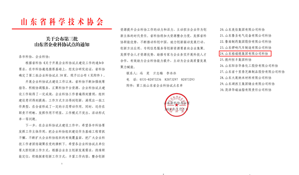 3月,山東省科學技術協會印發《關于公布第三批山東省企業科協試點的通知》,格瑞德集團有限公司科協成功入選第三批山東省企業科協試點。截止目前,德州市共有山東省企業科協試點7家。集團成功入選,再次表明集團高度重視企業科協建設,也顯示了集團在科技創新和行業發展方面的的卓越表現。