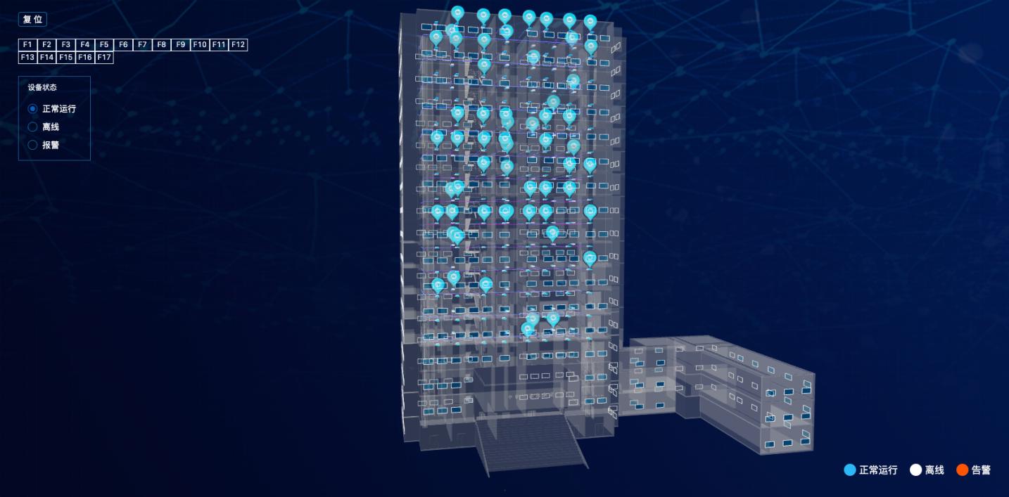 該項目以智慧樓宇為整體目標,以智慧暖通軟件平臺為底座,實現了中央空調系統、新風系統、消防系統、能源管理、環境監測整體智能化,并將系統與園區管理系統進行高度集成,實現了設備及數據的互聯互通。