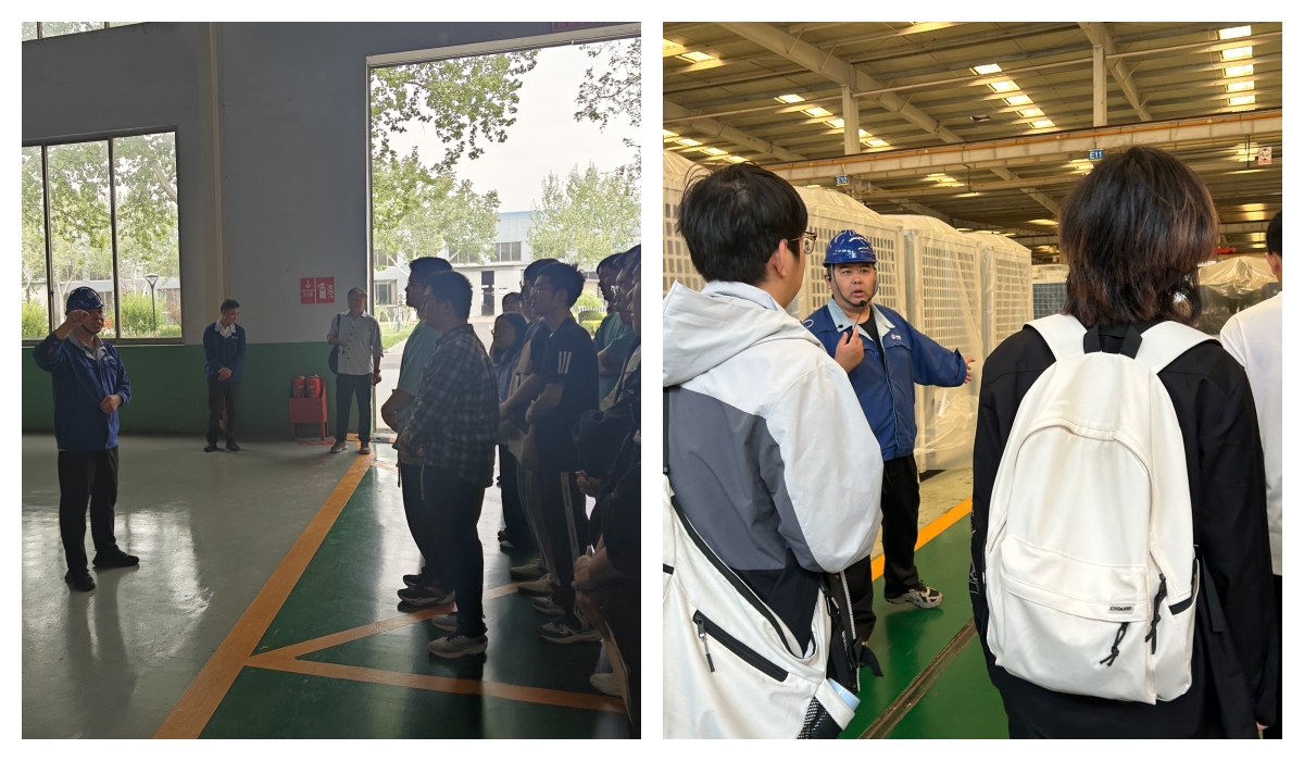 在能源工程公司,單元機產品線總經理白俊明、生產部李雪峰、風冷技術部鄧范毅等技術人員不僅為學生們詳細講解了產品理論知識,還認真開展了參觀前的安全教育,隨后帶領學生們走進車間,進行實地參觀學習。