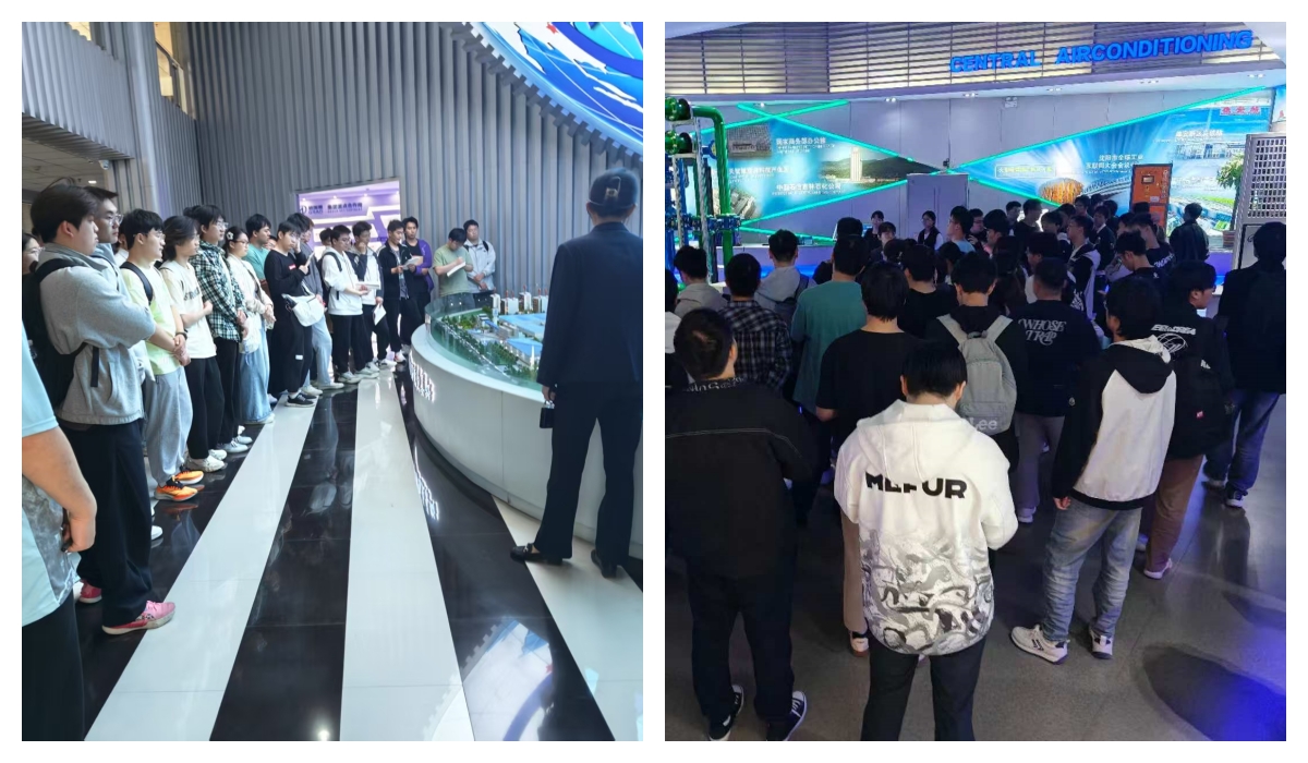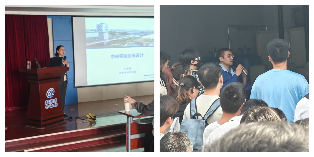 格瑞德環境科技公司系統工程組的王青環、劉立志則聚焦中央空調系統,為學生們進行了系統講解及圖紙設計演示。技術總工劉立志更是親自帶領學生們走進中央空調機房,讓大家近距離觀察設備的運行情況,進一步加深對專業知識的理解。