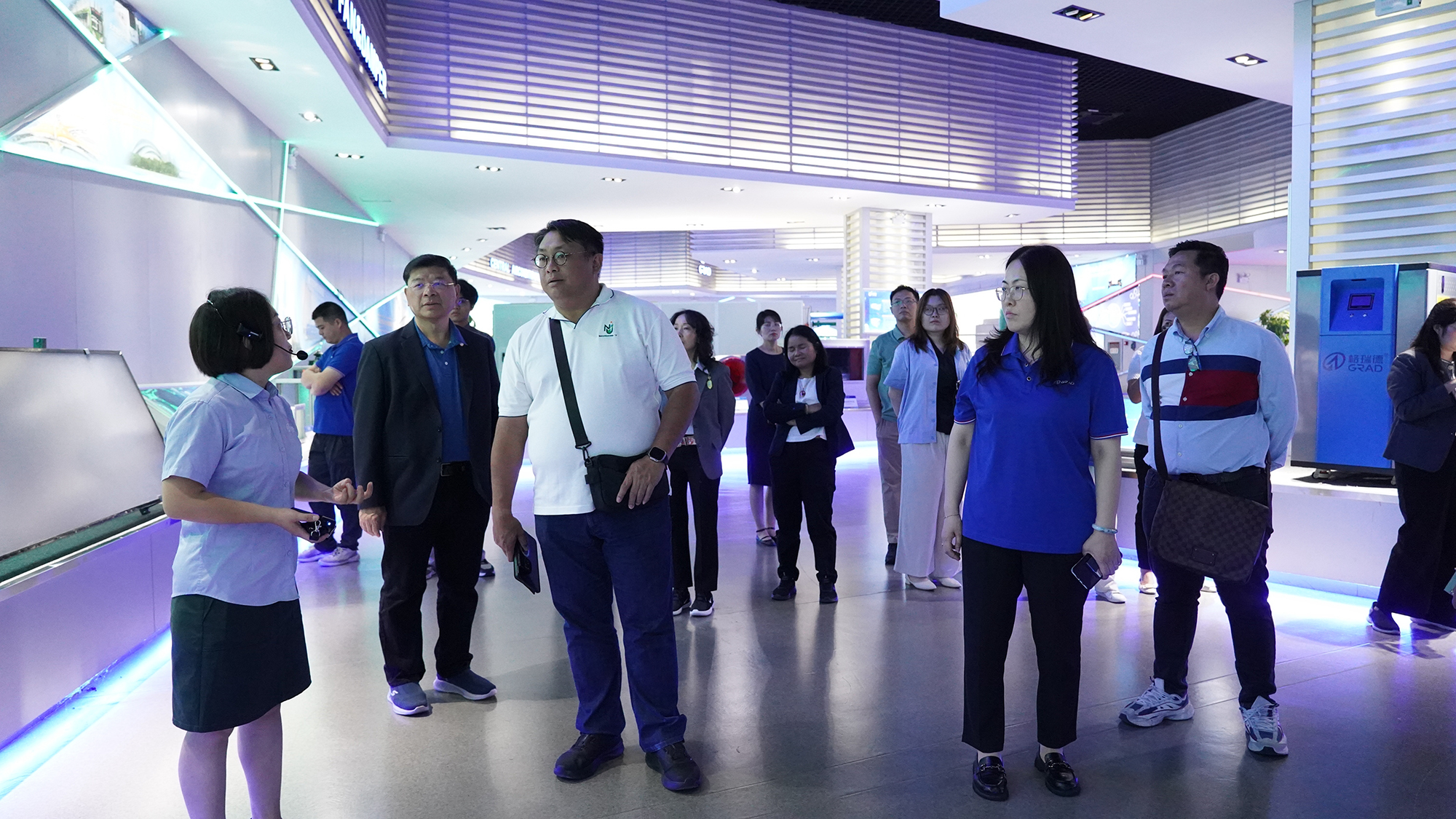 上午,由20多名泰國企業家組成的考察團隊蒞臨格瑞德集團參觀考察,格瑞德國際貿易工程公司總經理扈淑君率隊熱情接待。在展廳參觀過程中,來自泰國的企業家對格瑞德集團多元化產業鏈表示贊賞,并對格瑞德太陽能產品、玻璃鋼管道等產品興趣濃厚,并表示具有合作機會,可以推進下一步商務對接。
