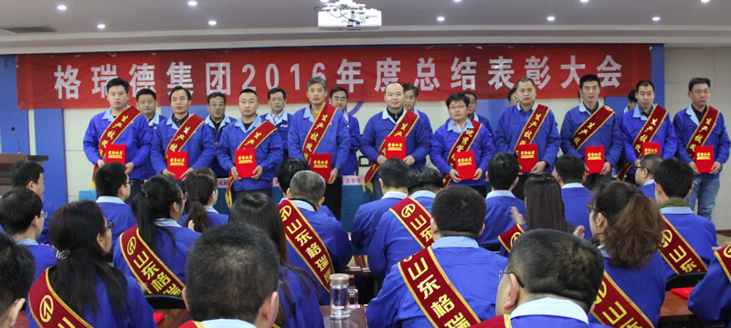 集團董事長管印貴在會上指出:當前經濟形勢下,我們承受著一定的壓力,但不乏動力與機遇,16年全年,集團各方面發展均有很大的發展,尤其是2016年是我們格瑞德集團改制以來第二年五年規劃的制定年和開啟年,我們重新制定了集團發展的五年規劃,為未來的發展樹立了明確的目標和制定了明確的發展方向。整個16年我們集團延續以往的發展勢頭,整體業績持續穩步提升,取得了歷史最佳的經營業績,年度指標均圓滿達成,工人工資、福利也有大的跨越。這些成績的取得,與各位員工的辛勤努力密不可分。