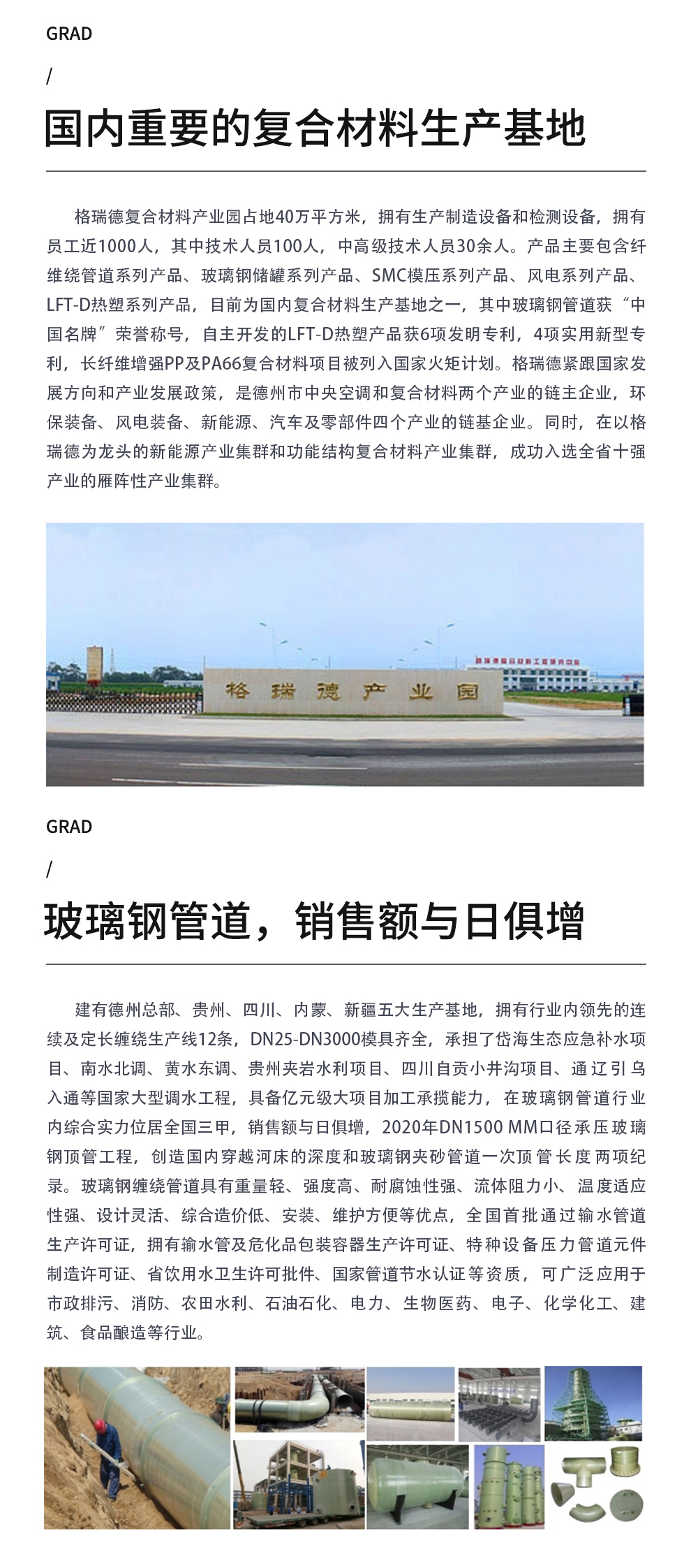 格瑞德1993年建立于山東德州,目前是一家圍繞人工環境,橫跨新能源、新材料、裝備制造、節能環保、信息技術五大戰略新型產業的企業集團。格瑞德進行全球化業務運作,產品和服務遍布全國的每一個省市和全球五大洲的100多個國家和地區,廣泛應用于基建工程、商業地產、工業制造、農業開發、電子信息、車輛工程、環保處理、醫藥凈化、海洋工程、軌道交通等領域。格瑞德從業人員過萬人,在山東、貴州、四川、新疆、內蒙等地建有生產基地,在上海、北京、濟南、蘭州以及美國洛杉磯建有研發中心。