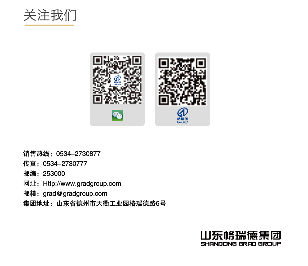 “用戶的滿意”是格瑞德永遠的追求,是格瑞德價值的體現。堅持“全程服務,德譽百年“的服務理念,通過優質的售前、售中及售后服務,使用戶切身體會到格瑞德的熱情和真誠,將生產制造體系上的質量控制全面延伸到服務保障體系上,實現了服務質量的全面提升。