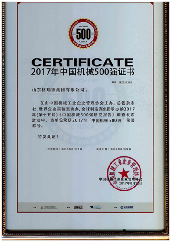 8月22日,由中國機械工業企業管理協會主辦,《總裁》雜志、世界企業實驗室、全球品牌研究院協會,中國機械網承辦的2017年(第十五屆)“中國機械500強暨中國機械品牌100強研究報告”發布會,在北京東方君悅大酒店隆重召開。我公司入選《中國機械500強》企業,并受邀參加了此次會議。