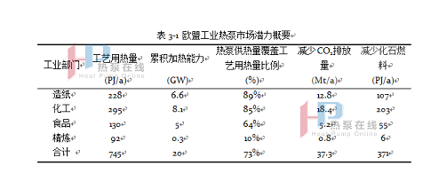 表3?1 歐盟工業熱泵市場潛力概要