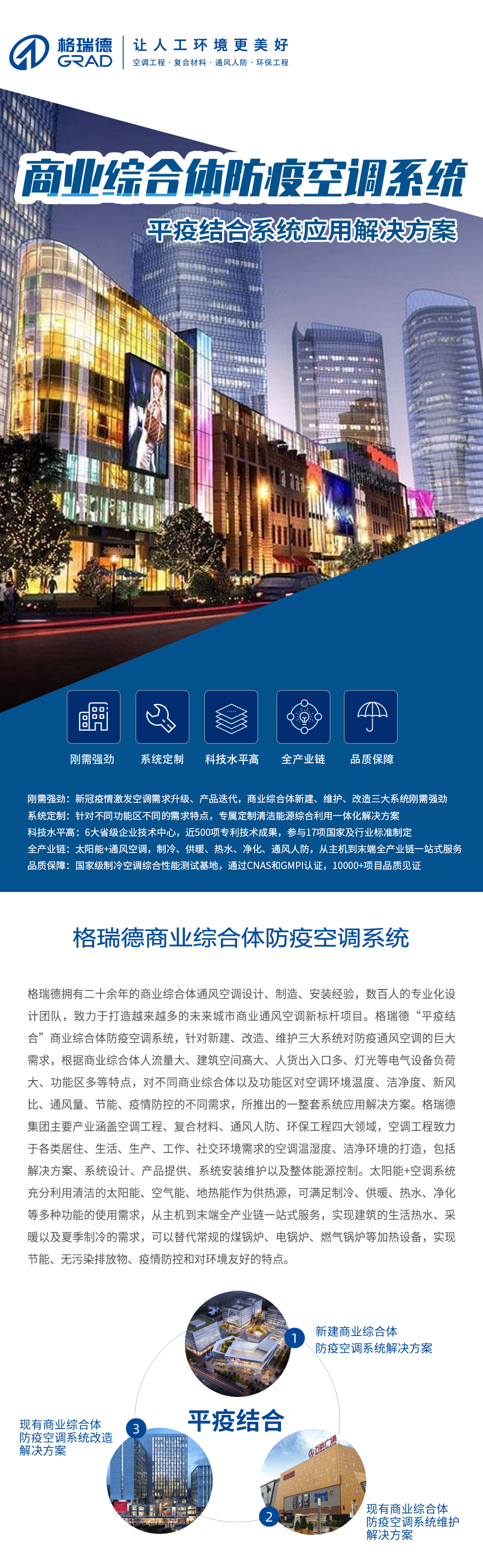 格瑞德1993年建立于山東德州,目前是一家圍繞人工環境,橫跨新能源、新材料、裝備制造、節能環保、信息技術五大戰略新型產業的企業集團。格瑞德進行全球化業務運作,產品和服務遍布全國的每一個省市和全球五大洲的100多個國家和地區,廣泛應用于基建工程、商業地產、工業制造、農業開發、電子信息、車輛工程、環保處理、醫藥凈化、海洋工程、軌道交通等領域。格瑞德從業人員過萬人,在山東、貴州、四川、新疆、內蒙等地建有生產基地,在上海、北京、濟南、蘭州以及美國洛杉磯建有研發中心。